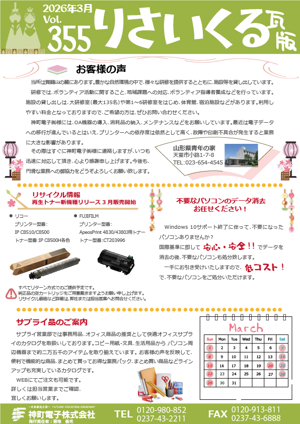 さて、今月のお客様の声は、山形県青年の家 様です。